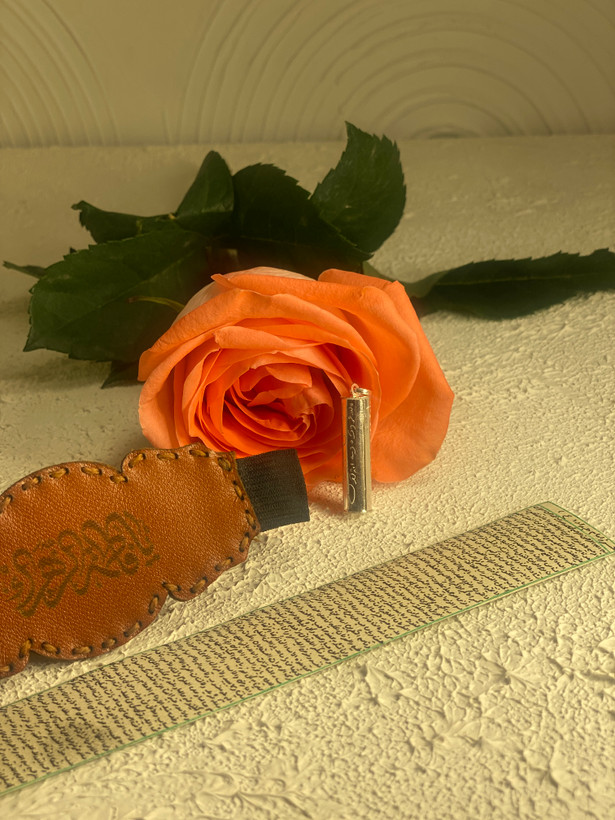 پک اول حرزامام جواد(ع):حرز کبیر بر روی پوست آهو+لوله نقره با حکاکی ذکر مخصوص+بازوبند چرمی